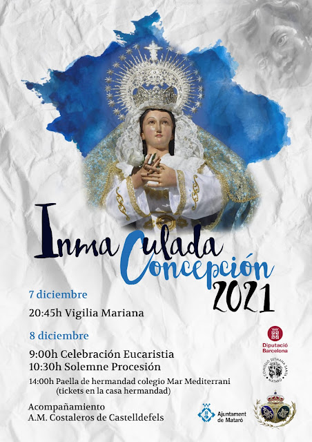 Poc a poc el calendari es va normalitzant. Després de la Processó de Crist Rei celebrat aquest proppassat cap de setmana, s'anuncia la propera celebració, la de la Immaculada Concepció.